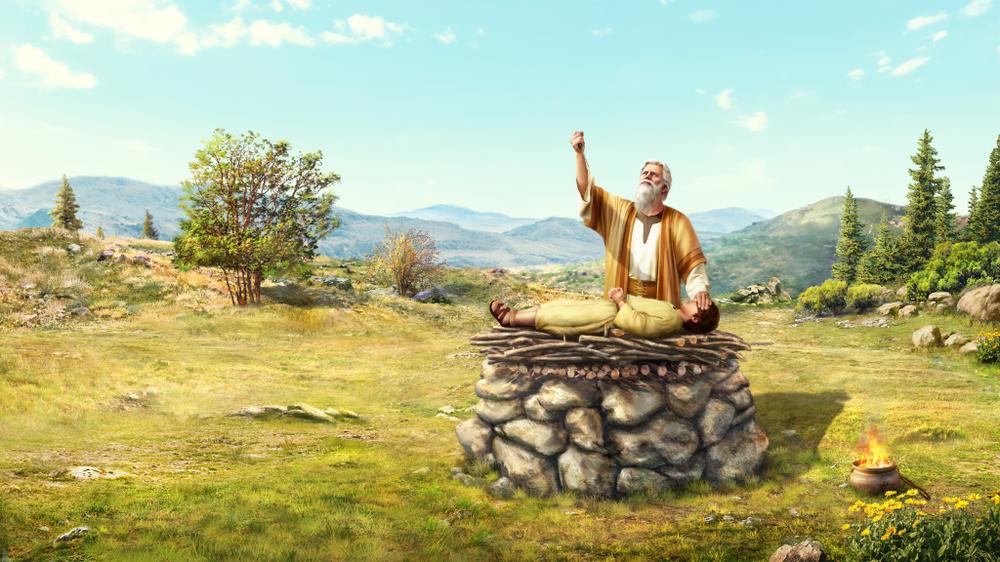Quando Abraão tinha 100 anos, Deus lhe deu um filho, Isaque. Quando Isaque estava na adolescência, Deus pediu a Abraão que o entregasse Isaque como oferenda. Abraão não discutiu com Deus nem se queixou, muito menos resistiu a Ele. Abraão fez o que Deus ordenou. Como está registrado nas Escrituras: “Levantou-se, pois, Abraão de manhã cedo, albardou o seu jumento, e tomou consigo dois de seus moços e Isaque, seu filho; e, tendo cortado lenha para o holocausto, partiu para ir ao lugar que Deus lhe dissera” (Gênesis 22:3). “Havendo eles chegado ao lugar que Deus lhe dissera, edificou Abraão ali o altar e pôs a lenha em ordem; o amarrou, a Isaque, seu filho, e o deitou sobre o altar em cima da lenha. E, estendendo a mão, pegou no cutelo para imolar a seu filho” (Gênesis 22:9-10). “Por mim mesmo jurei, diz Jeová, porquanto fizeste isto, e não me negaste teu filho, o teu único filho, que deveras te abençoarei, e grandemente multiplicarei a tua descendência, como as estrelas do céu e como a areia que está na praia do mar; e a tua descendência possuirá a porta dos seus inimigos; e em tua descendência serão benditas todas as nações da terra; porquanto obedeceste à minha voz” (Gênesis 22:16-18).