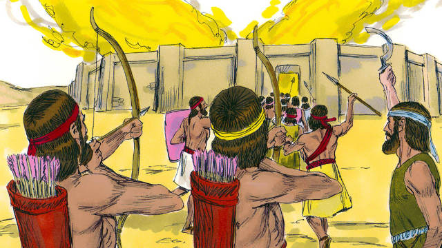 Então o Senhor disse a Josué: Estende para Ai a lança que tens na mão; porque eu ta entregarei. E Josué estendeu para a cidade a lança que estava na sua mão. E, tendo ele estendido a mão, os que estavam de emboscada se levantaram apressadamente do seu lugar e, correndo, entraram na cidade, e a tomaram; e, apressando-se, puseram fogo à cidade. Nisso, olhando os homens de Ai para trás, viram a fumaça da cidade, que subia ao céu, e não puderam fugir nem para uma parte nem para outra, porque o povo que fugia para o deserto se tornou contra eles. E vendo Josué e todo o Israel que a emboscada tomara a cidade, e que a fumaça da cidade subia, voltaram e feriram os homens de Ai. Também aqueles que estavam na cidade lhes saíram ao encontro, e assim os de Ai ficaram no meio dos israelitas, estando estes de uma e de outra parte; e feriram-nos, de sorte que não deixaram ficar nem escapar nenhum deles. Mas ao rei de Ai tomaram vivo, e o trouxeram a Josué.