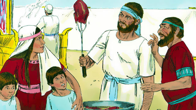 Ora, os filhos de Eli eram homens ímpios; não conheciam ao Senhor. Porquanto o costume desses sacerdotes para com o povo era que, oferecendo alguém um sacrifício, e estando-se a cozer a carne, vinha o servo do sacerdote, tendo na mão um garfo de três dentes, e o metia na panela, ou no tacho, ou no caldeirão, ou na marmita; e tudo quanto a garfo tirava, o sacerdote tomava para si. Assim faziam a todos os de Israel que chegavam ali em Siló. Também, antes de queimarem a gordura, vinha o servo do sacerdote e dizia ao homem que sacrificava: Dá carne de assar para o sacerdote; porque não receberá de ti carne cozida, mas crua. se lhe respondia o homem: Sem dúvida, logo há de ser queimada a gordura e depois toma quanto desejar a tua alma; então ele lhe dizia: Não hás de dá-la agora; se não, à força a tomarei. Era, pois, muito grande o pecado destes mancebos perante o Senhor, porquanto os homens vieram a desprezar a oferta do Senhor.