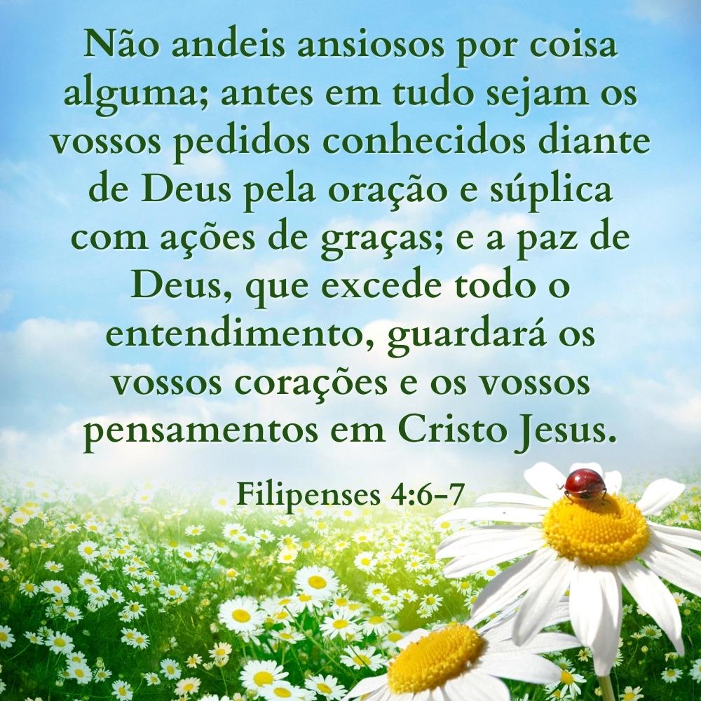 Esses versículos nos orientam sobre como lidar com os desafios, preocupações e incertezas da vida. Vivendo neste mundo tumultuado, frequentemente nos deparamos com circunstâncias perturbadoras. Contudo, esta passagem nos encoraja a não ficarmos preocupados ou ansiosos com essas coisas. Em vez disso, aconselha-nos a confiar tudo a Deus porque Ele cuida de nós e compreende as nossas necessidades. Quando entregamos todas as nossas dificuldades a Deus, oramos a Ele e expressamos gratidão, Ele nos concederá uma paz que excede a compreensão humana. Esta paz única pode salvaguardar o nosso interior, permitindo-nos permanecer firmes e serenos mesmo em meio à adversidade.